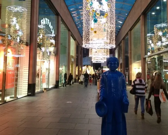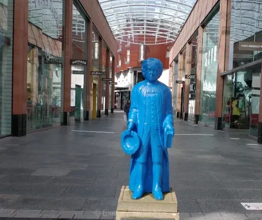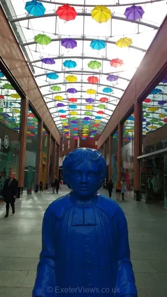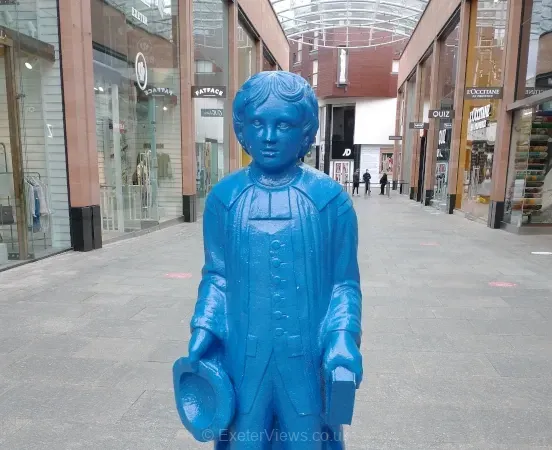 The Exeter Blue Boy statue has been watching over shoppers in Exeter’s Princesshay shopping centre for decades!