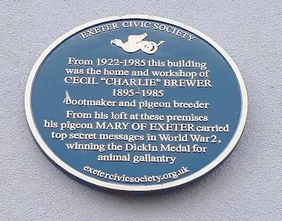 Installed to commemorate the home of Cecil "Charlie" Brewer and Mary the pigeon. Mary carried top secret World War 2 messages from the loft of these premises.